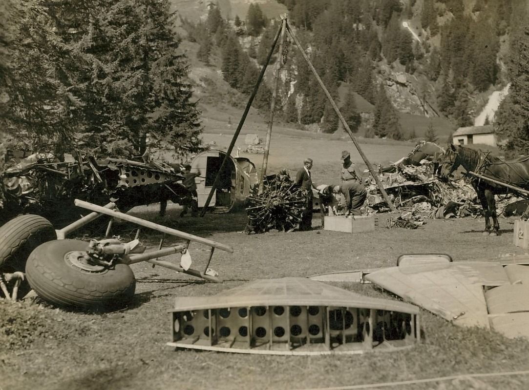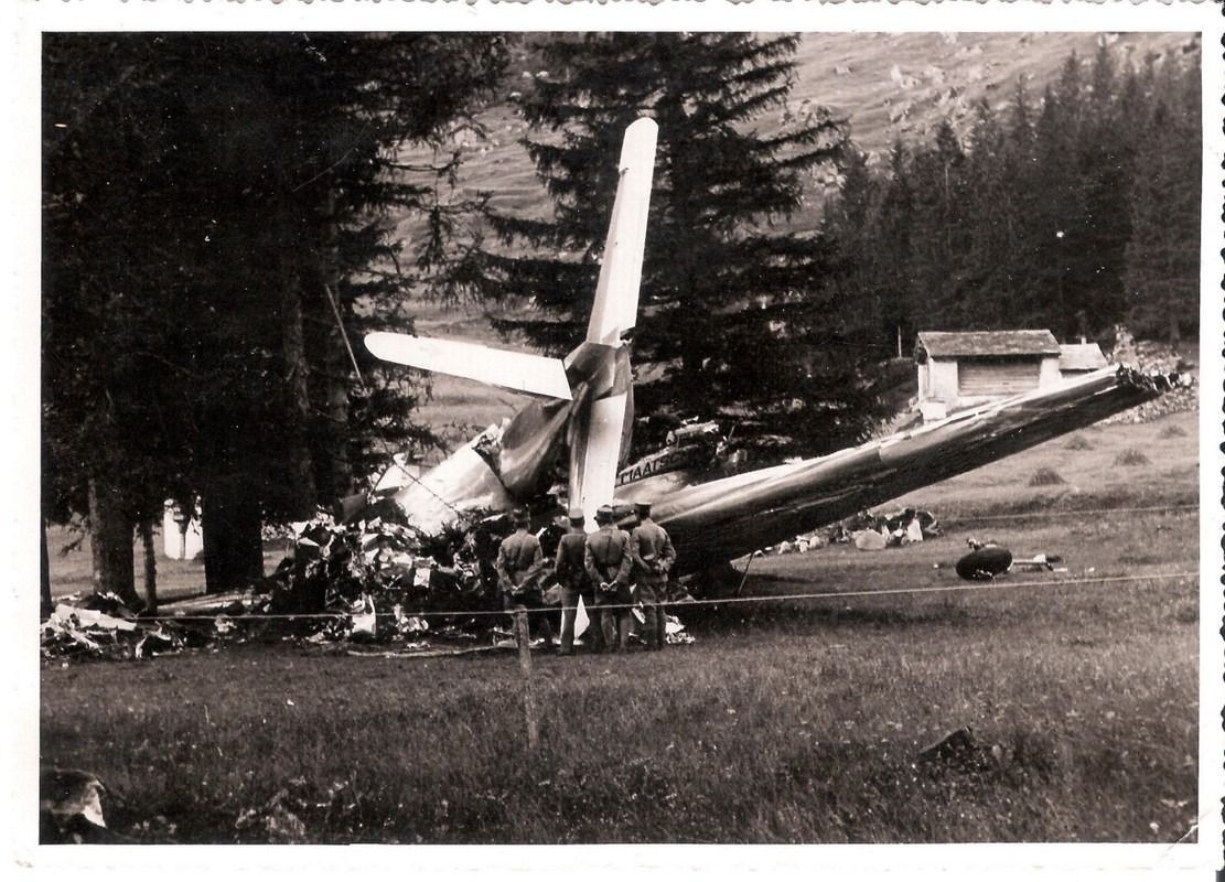 Il giornalista don Francesco Alberti, che si trovava in vacanza a San Bernardino, fu uno dei primi a giungere sul posto della sciagura: fece ancora in tempo a dare l'estrema unzione alla "hostess" che si era lanciata fuori dal velivolo quando stava per toccar terra e morì poco dopo. Le 13 salme furono deposte nella cappella di Pian San Giacomo, decorata da mani pietose con rami di abete e fiori di montagna: l'omaggio alle vittime di un disastro che il pilota aveva cercato di evitare tentando, all'ultimo momento, un atterraggio su una radura in leggera pendenza. Nella manovra, l'apparecchio urtò tuttavia contro un filo a sbalzo, che troncò netto un'ala.